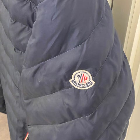 Moncler Vinterjakke i størrelse L til herrer. Jakken er sort og lavet af dun med leder på skuldre og ærmerne, hvilket giver god isolering mod kulde. Designet til udendørs brug i vintermånederne.