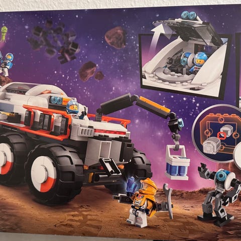 Legesættet indeholder en snoet rutsjebane med 3 bevægelige vogne, som suser forbi en dekorativ rumraket, modeller af Saturn og Jorden, en månebase og et stjerneskud. Der er også en cool meteor, der kan lyses op af en lysklods, samt 5 minifigurer.