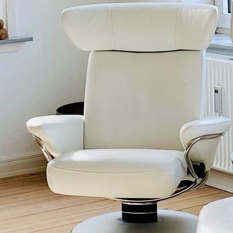 Original Stressless lænestol fra Ekornes i elegant hvidt læder sælges.