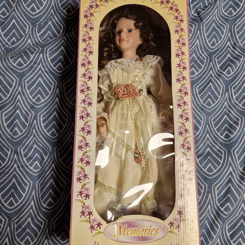 Jeg sælger min hjemmelavede tekstildukke, som er håndsyet og lavet med stor omhu og sans for detaljer. Dukken er unik – der findes ikke to helt ens.