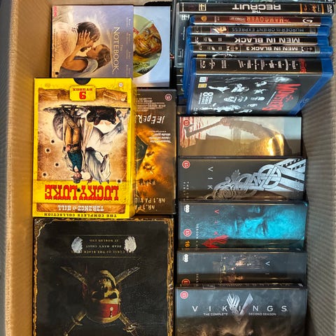 Blandede DVD og Blu-ray film. 52 stk og derudover følgende film Lord of the rings extended, The Pacific, Band of brothers, Parates of Caribien 4 film serien og Starwars complete 6 film