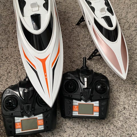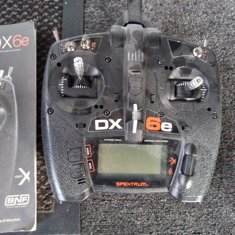 Spektrum DX6 med modtager. Lækker sender med voice alert og mange mange funktioner. Brugt meget lidt. Lipo batteri i senderen så der er rigtig lang brugstid på mellem opladninger.