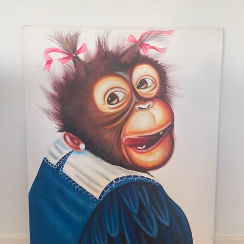 Vægdekoration, tegning i ramme, pingvin i mælkebøtteskærm, Tegninger i ramme til børneværelser feks