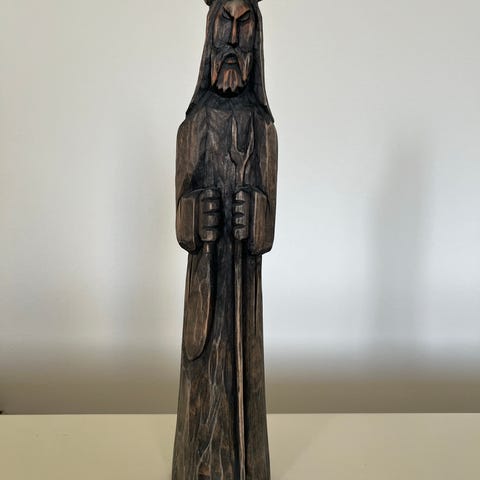 To fine træfigurer af fransk nøddetræ sælges samlet for kun 2000 kr.