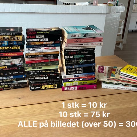 forskellige bøger, se billeder I fin og intakt stand. Fra ikke ryger hjem. Afhentet eller plus 58 kr. til forpakning og forsendelse med tracking. Evt. flere bøger med for 1 bogs porto. Alle i god stand. Pr. stk.