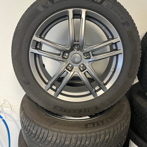 Her er 4 flotte hjul med vinterdæk Mrk. Nokian ( Hakka Pelitta ) de er monteret med Tpms ventiler og mønsterdybden er over 8 mm
