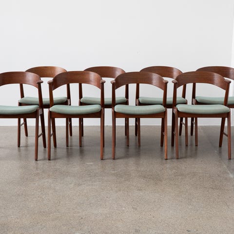 Kai Kristiansen model T21. 8 lækker retro spisebordsstole i taek. Er betrukket med skai i sort. Fremstår i super stand. Evt kan lev aftales. Pris er pr stol.