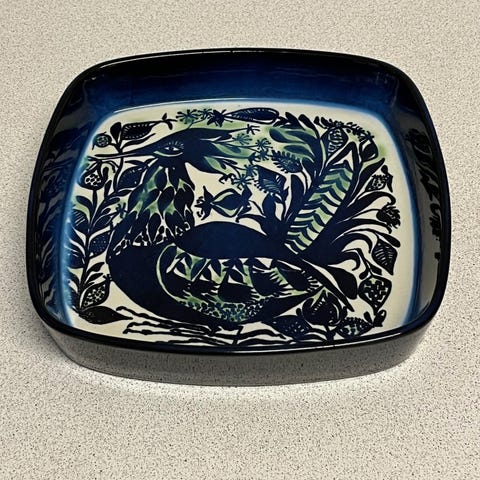 Fajance, 719 - 2885, Royal Copenhagen Aluminia, Royal Copenhagen Aluminia fajance skål / fad nr. 719 - 2885 designet af Nils Thorsson i 1. sortering sælges. Den er 27 x 27 cm og er 5 cm høj. Kan sende med GLS og DAO.