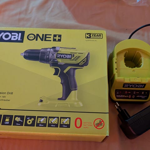 Ryobi Akku Slagskruetrækker med batteri og oplader. Farve: Gul og sort. Trådløs elektrisk skruetrækker egnet til forskellige monteringsopgaver.