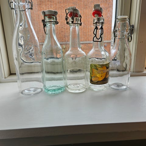 Tre retro patentflasker. Sælges samlet for 25 kr eller 10 kr pr. stk.