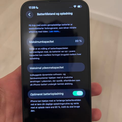 Apple iPhone 13 smartphone med 128 GB lagerplads, sort, lader medfølger, nyeste iOS 26.2, 100 procent ok, klar til brug, super batteri.