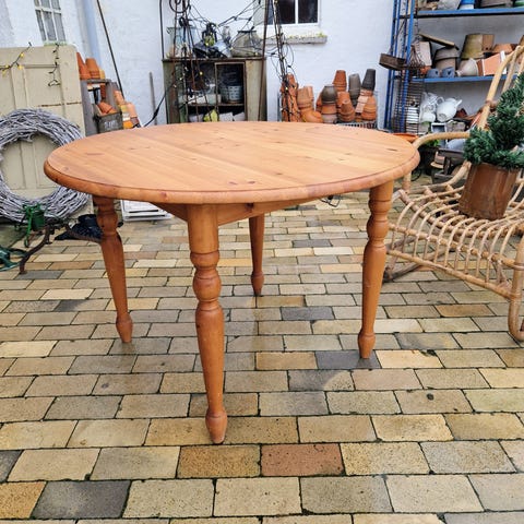 The table features a beautiful warm wood tone and a sturdy central base that provides excellent stability.
