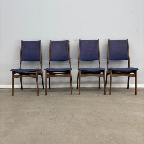 Sturdy and comfortable, these chairs are perfect for a dining room, kitchen, or as accent chairs in a vintage or Scandinavian-style home.