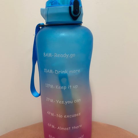Motivationsflasken har et sjovt og motiverende design, der gør det nemt for dig at følge med i, hvor meget vand du har drukket og mangler at drikke for at nå i mål.
