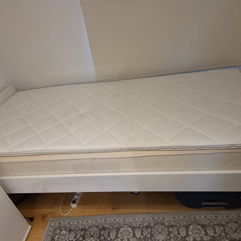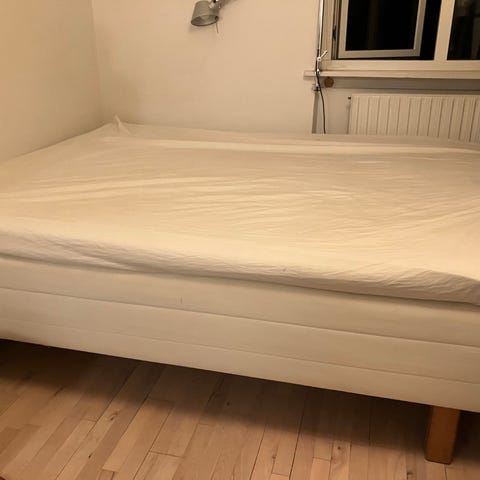 Solid Sultan seng fra IKEA. Tung seng med 5 ben (1 ben i midten), med tung topmadras. Skøn at sove i.