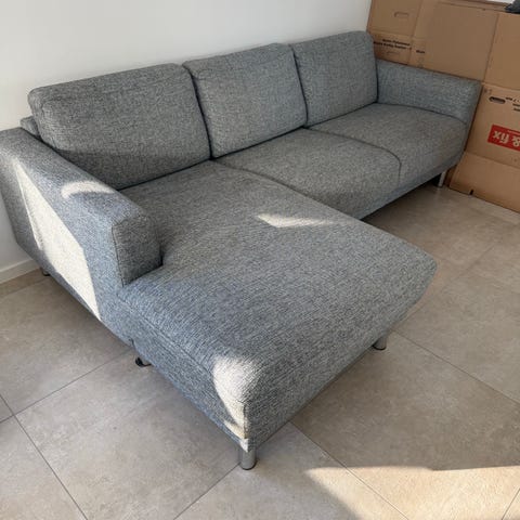 Moderne og komfortabel sofa i mørkegråt stof. Sofaen har et stilrent design, god siddekomfort og passer perfekt ind i både stue, kontor eller lejlighed. Fremstår velholdt og klar til brug.