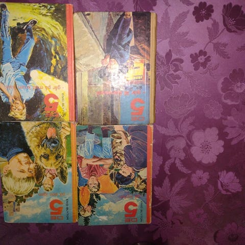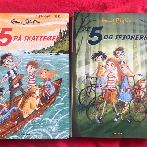Aschehoug De 5 Bøger Serie består af flere bøger med forskellige titler og historier, herunder 'De 5 og spionerne', 'De 5 på skatteøen', 'De 5 på den mystiske hede' og 'De 5 på øen igen'. Serien indeholder spændende fortællinger og er en del af en samling på 38 bøger. Bøgerne er illustreret og henvender sig til børn og unge læsere.