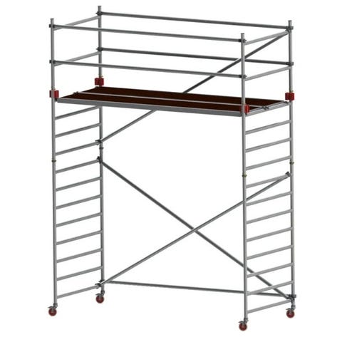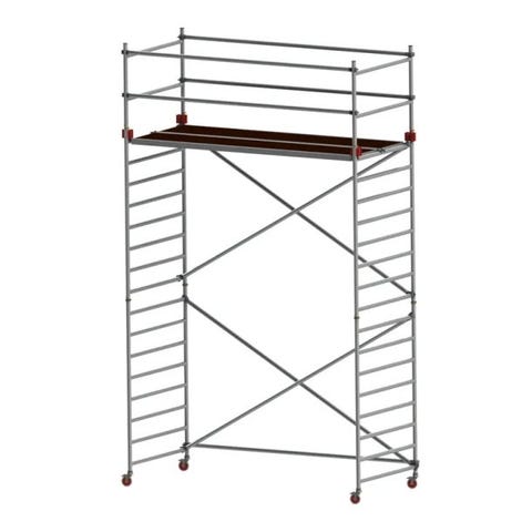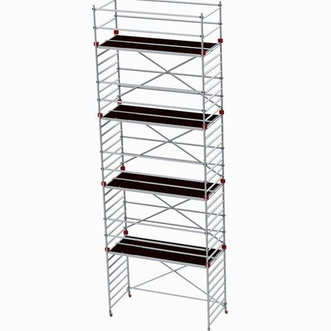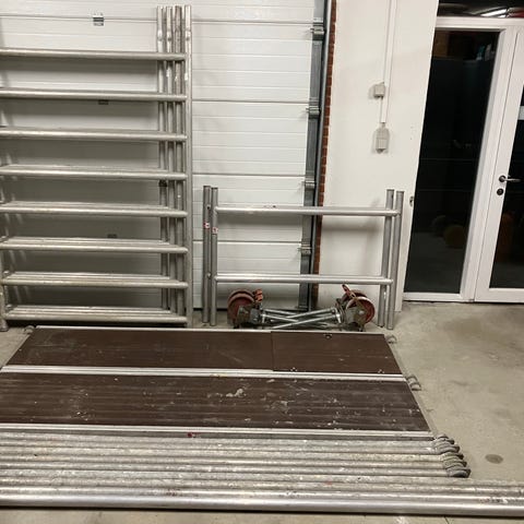 Fint jumbo rullestillads med en arbejdshøjde på 6 meter. Stilladset består af følgende:
