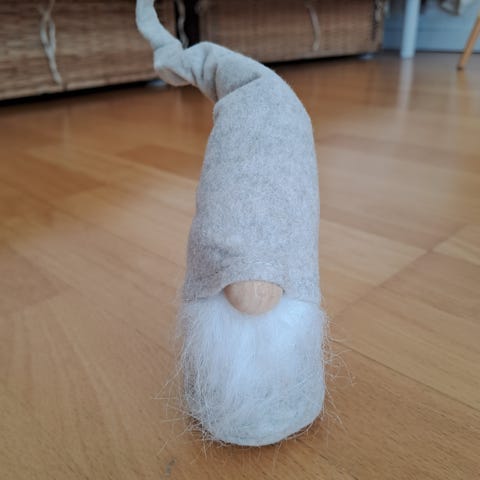 To nisser med træ næse, filt, strikhue, kunstig pels. Køb 2023 i Holbæk.
