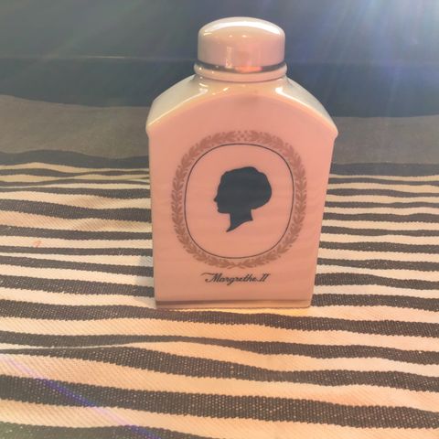 Dåsen til højre har en silhuet af Dronning Margrethe II og hendes signatur.