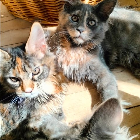 De er af rasen Maine coon men er uden stamtavle.
