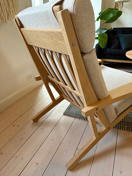 Hans J. Wegner GE375 lænestol i eg med nyt hyndesæt