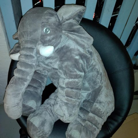 jule gaveide. Nyvasket ældre grå bamseelefant plysdyr krammedyr fra Dyrfrit og Røgfrit hjem