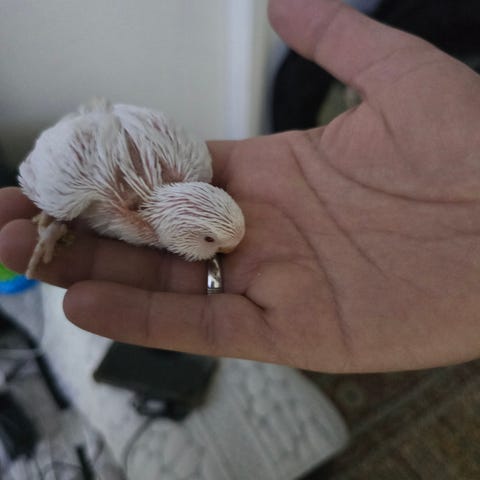 Jeg har haft ham siden han var 8 uger gammel, og har lært ham at sidde på finger, hvilket er en god start hvis man har planer om at gøre ham helt tam.