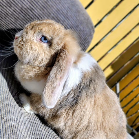 Hun er en super rolig og Tam kanin, med to super flotte Krystal blå øjne.