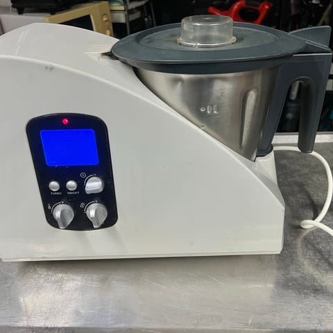 Thermomixeren er flittigt brugt, men fejler absolut ingenting ren funktionelt. Dog er “håndtaget” knækket, men det påvirker ikke maskinens funktion.