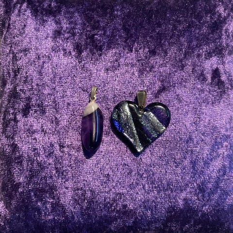 Stort XL Graciøst Ametyst/lyserød Hjerte i glas m. tilhørende original halsbånd læder elr imiteret læder.