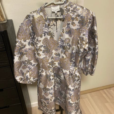 Nytårskjole Noella str M i gyldne farver slå om model med bindebånd