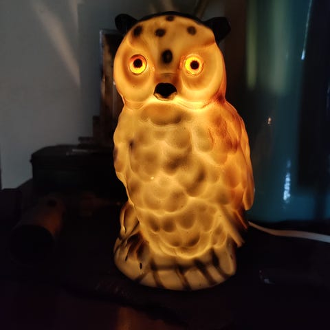Ældre ugle-ozonlampe i fin stand - med ny ledning og pære.