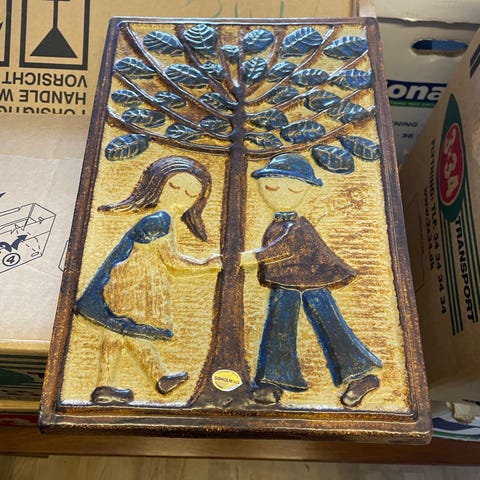 Søholm Keramik vægplade med påfugl motiv fra 1970