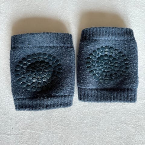 Gobabygo grå kravle knæbeskyttere med gummidutter. Gode for at baby kan stå bedre fast under kravl. Brugt sparsomt. Kun vasket i neutral vaskemiddel.