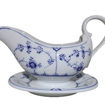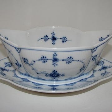 Royal Copenhagen Musselmalet Riflet Hotelporcelæn, sovseskål md tyk kant.