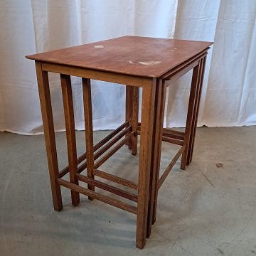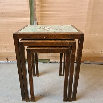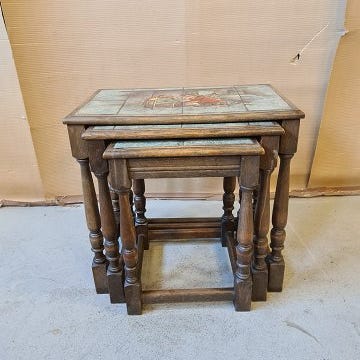 3 Indskudsborde i massivt egetræ med kakler, fra 19330erne.