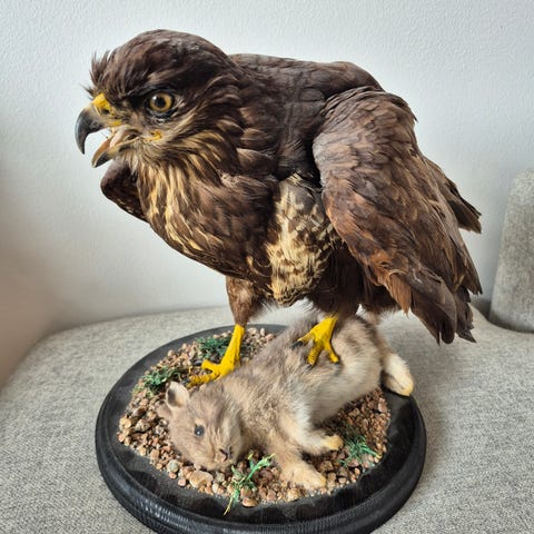 Udstoppet musvåge, rigtig fin, måler ca H 50,5 x B 14 x D 30 cm.
