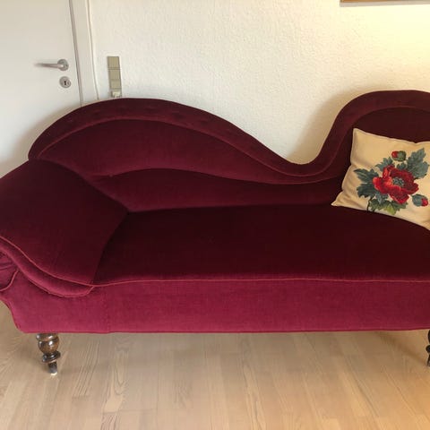 Vintage chaiselong lænestol med ramme i træ og polstring i læder. Designet til afslapning med en lang, ergonomisk form. Stolens overflade viser naturlige tegn på brug og patina. Måske fra 20'erne.