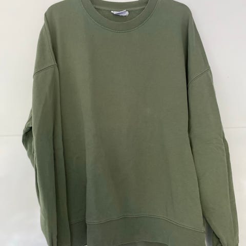 Sweatshirt med rund hals, lange ærmer. Ribkant ved halsen, på ærmer og forneden på blusen.