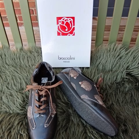 Smukke sneakers med musikmotiver fra det italienske kvalitetsmærke Braccialini str. 38. Kan bruges både af piger og drenge og voksne kvinder. Ubrugte. Sælges billigt, fordi det snart er jul. Evt. Fragt betales af køber.