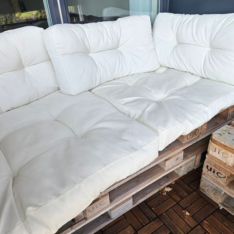 Hynden til pallesofa er blød og behagelig takket være betrækket i bomuldsstof samt den tykke polstring. Hynden er mere end blot en praktisk tilføjelse; den har også en dekorativ funktion.