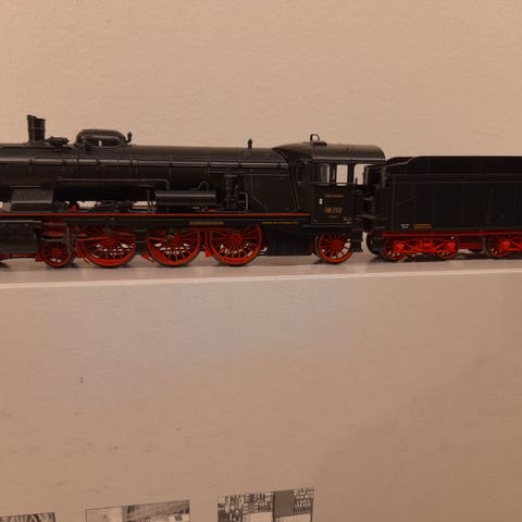 Stort tysk damplokomotiv m tender fra DB Deutsche Bundesbahn. Oliefyret lokomotiv