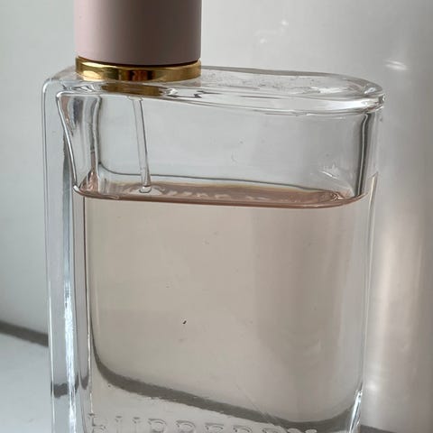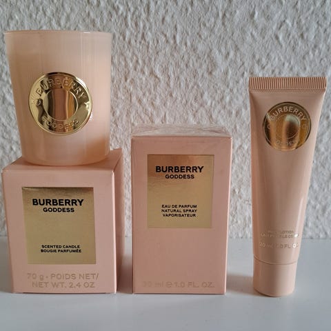 Burberry Her Parfume og Body Lotion sæt indeholder en parfume og en body lotion. Parfumen kommer i en klar flaske med Burberry-logo, og body lotionen er i en matchende rosa tube. Produktet er designet til kvinder.