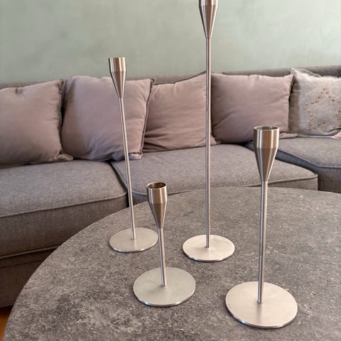 Jupiter / Saturn, Piet Hein, Lysestager I Børstet stål + 2 Lysmancheter