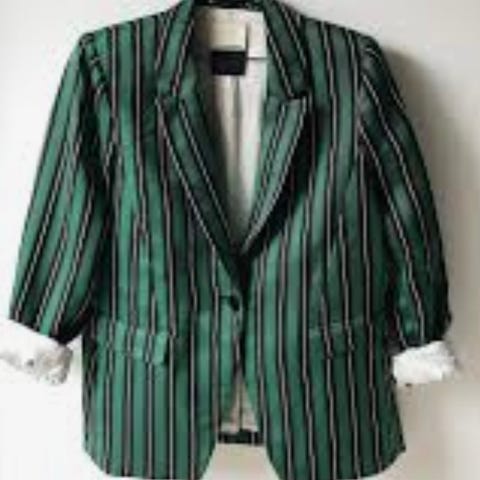 Grøn, Flot grøn blazer med guldknapper og snydelommer. Blazeren er fra Studio.