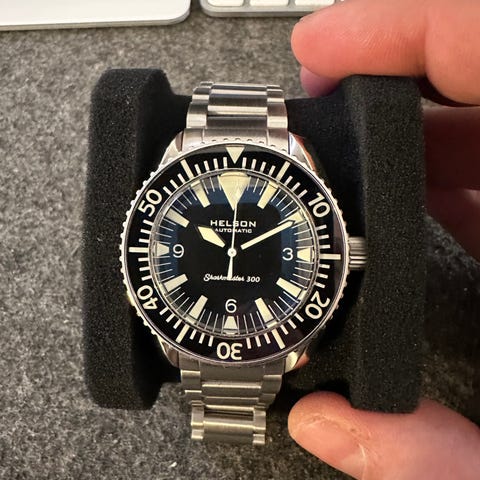 sælger helson sharkdiver 2000m.uret er i flot stand kommer med watch roll og certifikate.uret måler 45mm med miyota 9015.uret er fra 2019