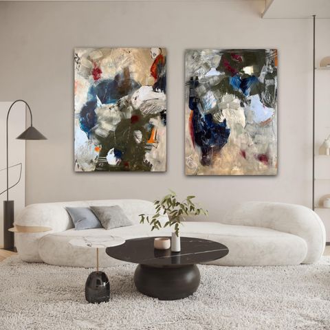 2 store malerier 90x120 cm, af “Art by Feline Nor”