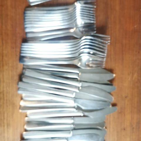 Der er 12 af hver; - kniv gaffel spiseske og teske