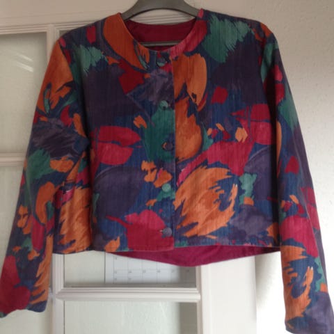 Pæn kort jakke/overdel med finesser på forstykkerne, glat ryg. Gennemforet. Uld/polyester.